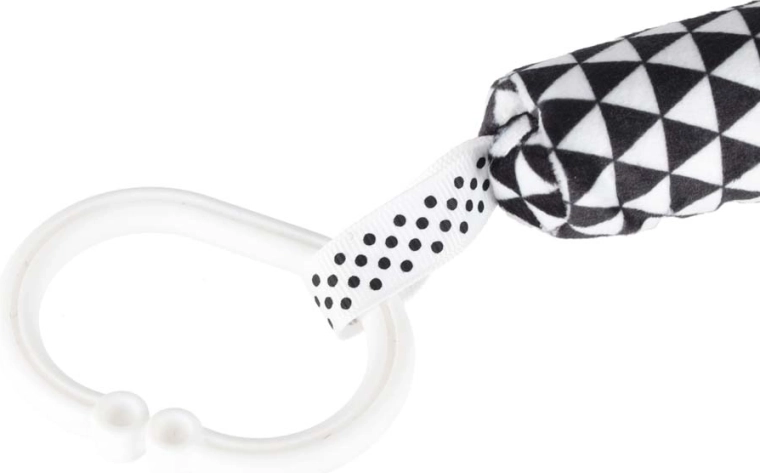 Clipul/inelul practic permite prinderea rapidă de mânerul căruciorului, de scaunul auto sau de marginea pătuțului. Astfel, jucăria rămâne mereu la îndemână.