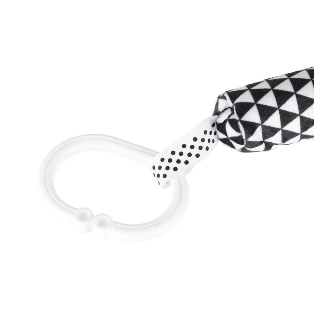 Datorită inelului/clipului universal, jucăria se fixează ușor pe cărucior, pătuț sau marsupiu, astfel încât bebelușul va avea mereu la îndemână jucăria senzorială preferată – acasă și în călătorii. Zornăitoarea și detaliile foșnitoare stimulează auzul, în timp ce diferitele structuri susțin simțul tactil și antrenează prinderea.
