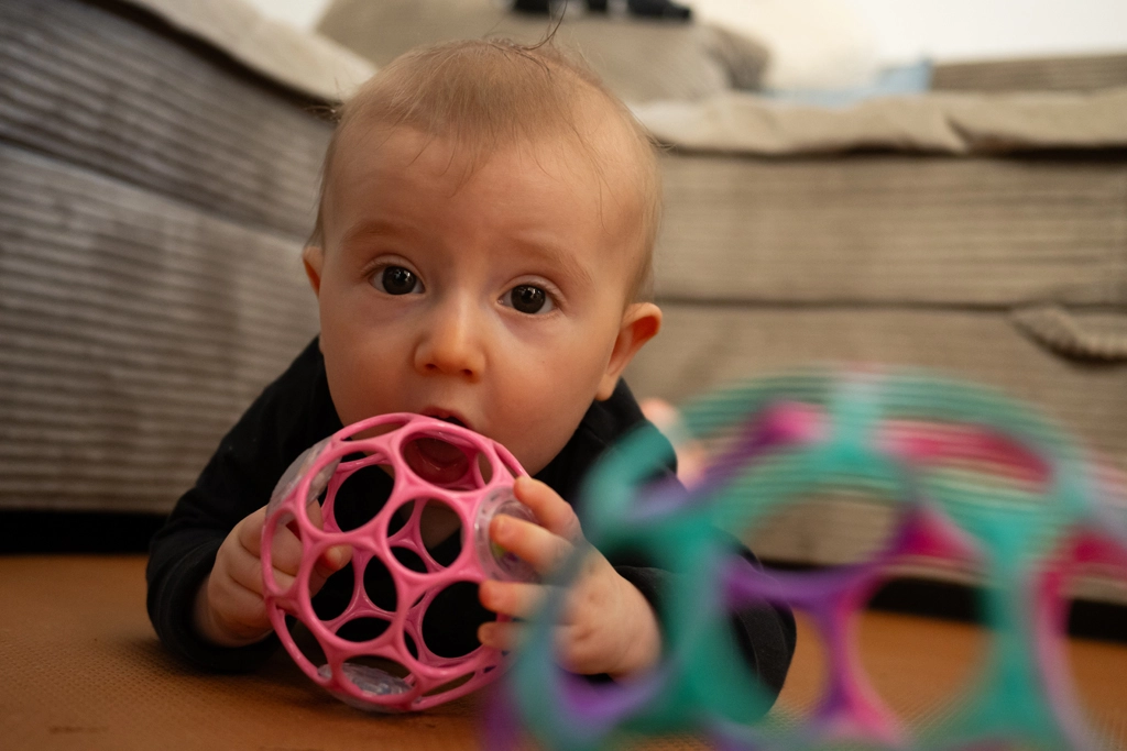 - De la naștere: prima jucărie perfectă pentru dezvoltarea motricității și a simțurilor.