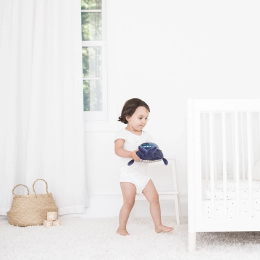 Funcțiile practice includ 3 niveluri de intensitate a luminii, volum reglabil și oprire automată (muzica după 15 min, proiecția după 25 min) pentru un somn neîntrerupt. Lumina rece LED este sigură, nu se încălzește și economisește energie. Modulul luminos detașabil permite spălarea husei din pluș la mașină, astfel încât jucăria rămâne mereu curată și catifelată.