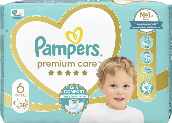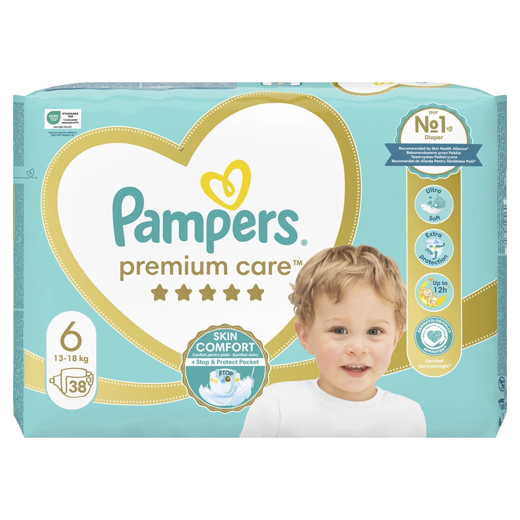 Oferiți bebelușului dvs. ce e mai bun – scutecele de unică folosință Pampers Premium Care mărimea 6 asigură absorbție instantanee, protecție fiabilă împotriva scurgerilor și confort ultra catifelat pentru pielea sensibilă. Datorită buzunarului Stop & Protect și taliei elastice, copilul rămâne uscat și confortabil pe tot parcursul zilei și nopții.