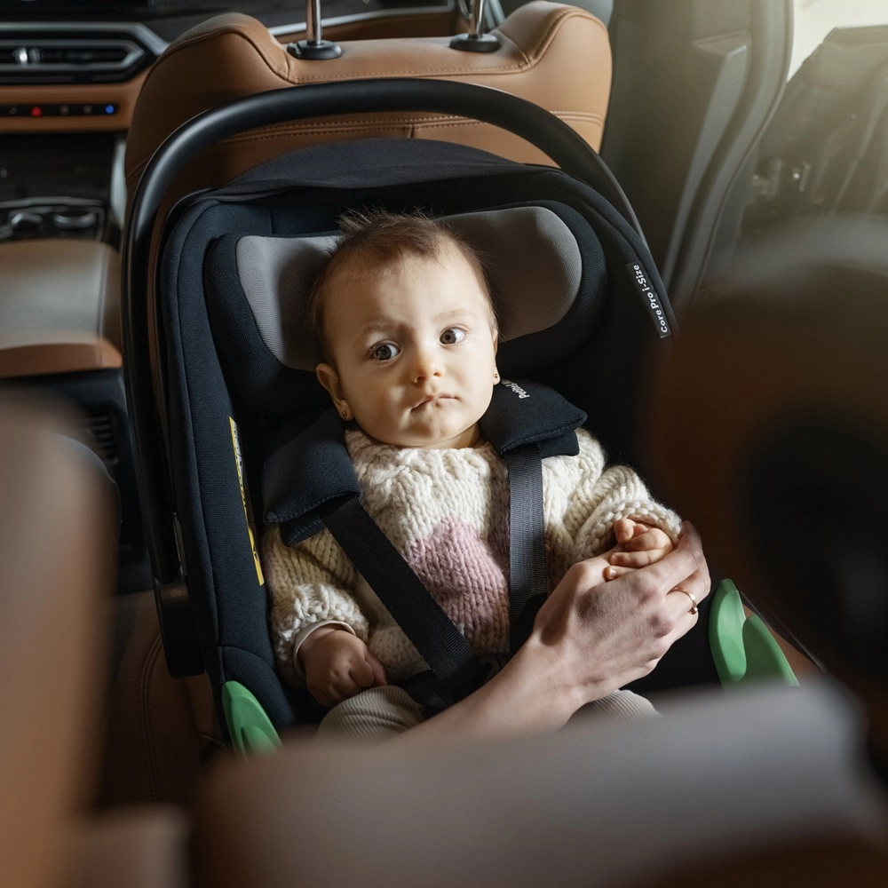 - Siguranță fără compromisuri: i-Size ECE R129, picior de sprijin, indicatori verzi clari ai instalării corecte.