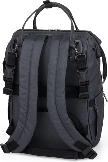 - Confort și versatilitate – bretele reglabile, mânere superioare, curele laterale pentru cărucior și un design elegant potrivit atât pentru mamă, cât și pentru tată.