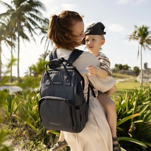 Rucsacul stilat și practic pentru schimbat scutece PETITE&MARS Jack în nuanța Ultimate Grey este maestrul organizării pentru părinții în mișcare. Oferă un interior spațios și bine structurat, acces facil datorită deschiderii largi și a deschiderii cu fermoar pe spate, 2 buzunare termice, buzunar impermeabil pentru lucruri ude și curele laterale pentru prindere de cărucior. Include salteluță de înfășat pliabilă și buzunare gândite pentru biberon, telefon și șervețele umede – totul ușor, rezistent la umiditate și ușor de curățat.
