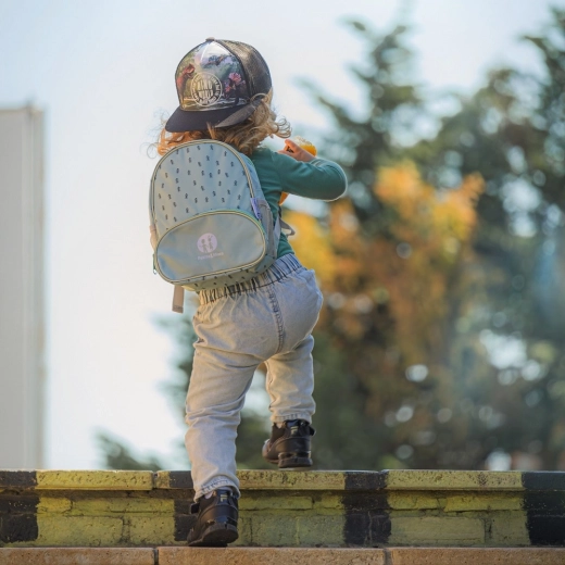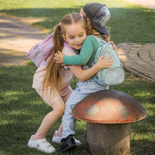 Compartimentarea bine gândită ușurează organizarea: compartimentul principal cu fermoar găzduiește gustarea și jucăria preferată, iar buzunarul frontal este ideal pentru „comori” și mărunțișuri. Rucsacul este ușor, rezistent și se curăță simplu – însoțitorul perfect pentru locul de joacă, grădiniță și excursii.