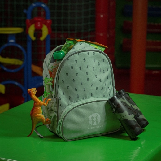 Rucsacul Backie Tree de la PETITE&MARS este conceput pentru micii aventurieri. Dimensiunile compacte se potrivesc perfect copiilor de la 3 ani, în timp ce cureaua de piept menține bretelele pe umeri și crește stabilitatea la mers sau alergare. Datorită elementelor reflectorizante, copilul este mai vizibil în condiții de iluminare slabă.