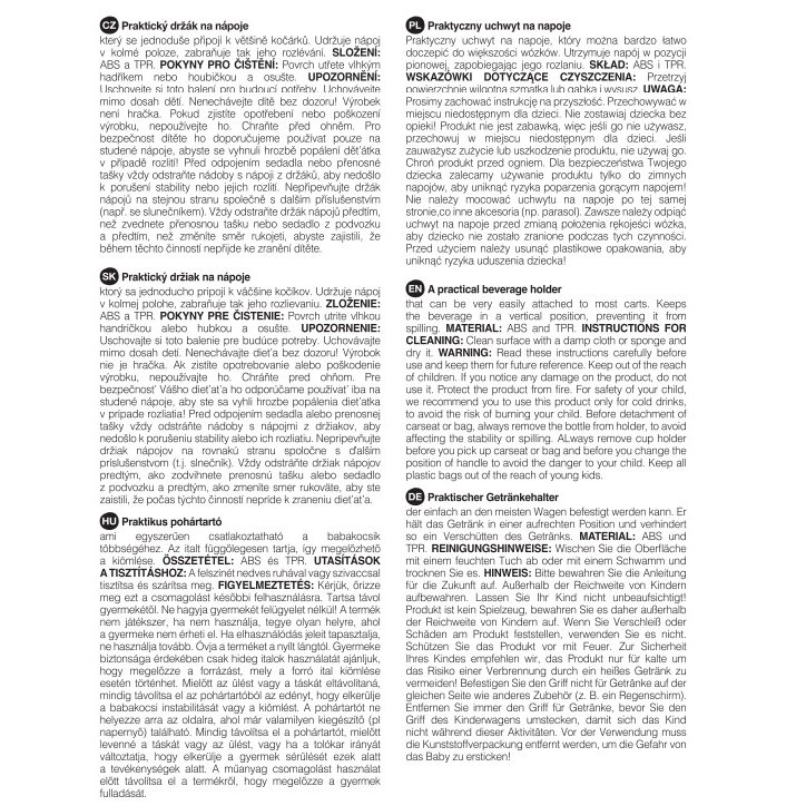- Recomandat pentru băuturi reci; înainte de a manevra landoul/scaunul, scoate băutura