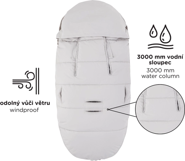 Săculețul PETITE&MARS Comfy Veritable 4în1 este creat pentru confortul și protecția maxime ale copilului în timpul plimbărilor de toamnă și iarnă. Datorită coloanei de apă de 3000 mm și materialului rezistent la vânt cu impregnare ecologică BIONIC-FINISH ECO, copilul rămâne uscat și cald chiar și pe vreme nefavorabilă. Croiala universală cu deschideri verticale pentru centuri garantează compatibilitate cu o gamă largă de cărucioare, inclusiv modele cu sisteme specifice de prindere.