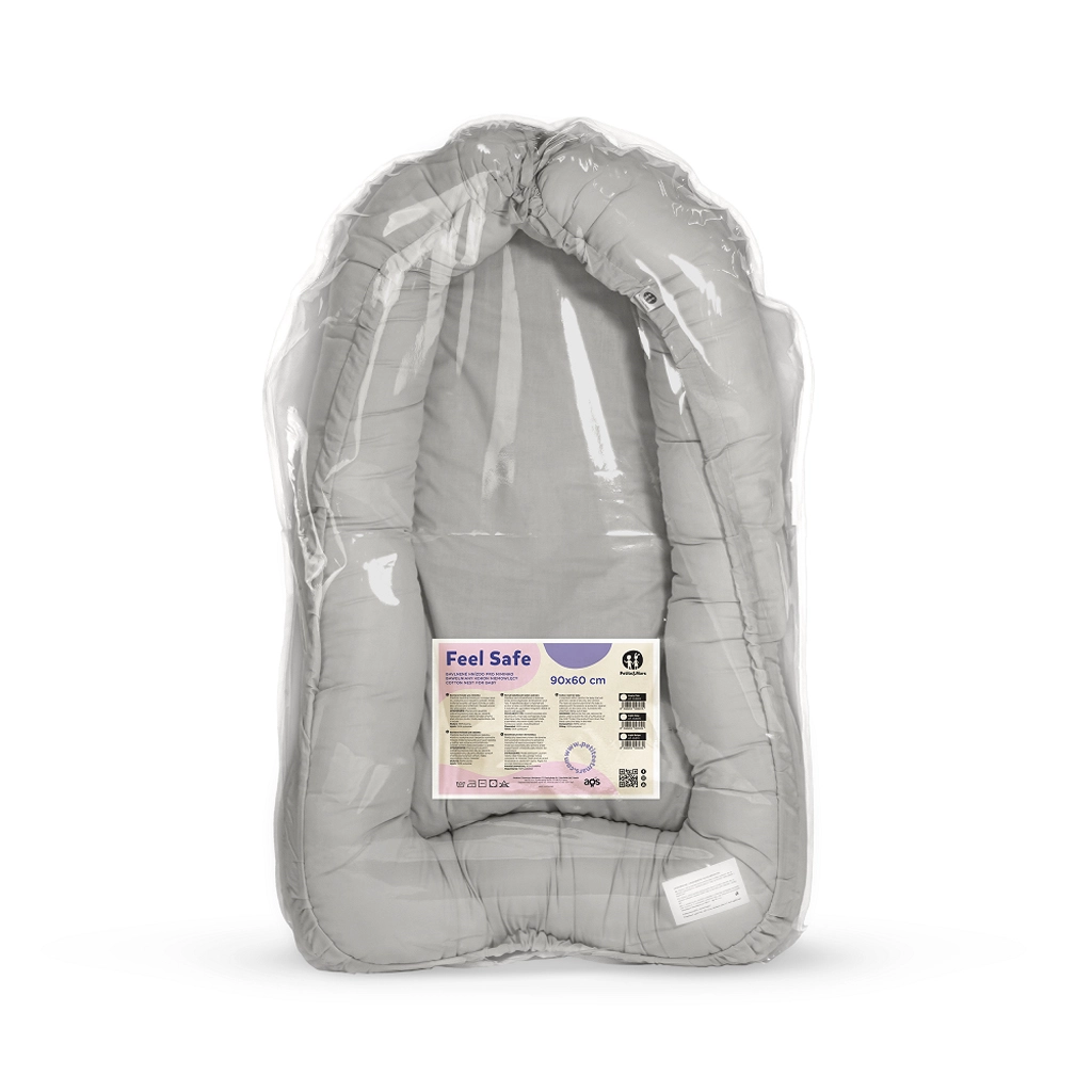 Cuibul moale pentru bebeluși PETITE&MARS Feel Safe, în culoarea gri deschis, oferă bebelușului un mediu sigur și confortabil încă de la naștere. Datorită marginilor ajustabile, poți regla ușor dimensiunea, pentru ca cel mic să simtă confort ca în burtică. Construcția ușoară și practică este ideală pentru pătuț, canapea și chiar în patul părinților ca protecție împotriva suprapunerii în somn.