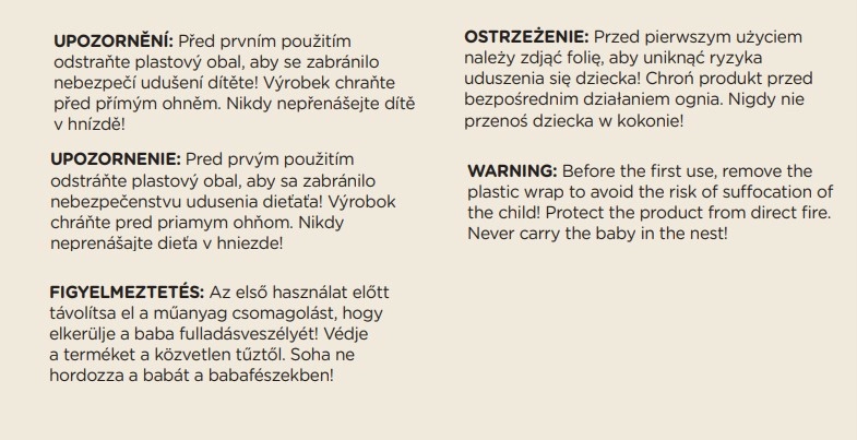 - Îndepărtați ambalajul din plastic înainte de utilizare; feriți de foc; nu transportați niciodată copilul în cuib