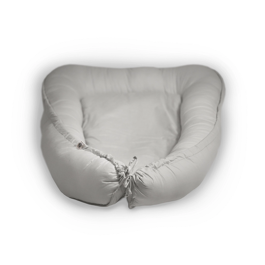 Datorită marginilor cu șnur reglabil, poți adapta forma și dimensiunea la nevoile actuale ale copilului. Cuibul este ușor, se transportă cu ușurință și îl poți folosi acasă în pătuț, în patul părinților, în cărucior la plimbare sau în timpul călătoriilor în familie.