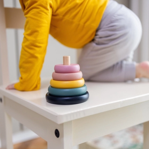 Șase inele netede îi ajută pe copii să înțeleagă ordinea și dimensiunile, susțin gândirea logică și percepția vizuală.