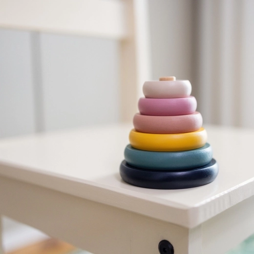 Manipularea inelelor antrenează priza, precizia mișcării și coordonarea mână–ochi încă de la vârste fragede.