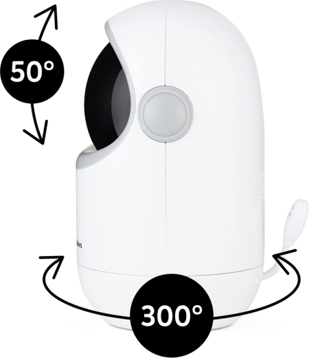 Rotește camera orizontal până la 300° și vertical 30° în sus/20° în jos. Unghiul de vizualizare de 68° asigură controlul asupra întregului pătuț și al zonei de joacă.