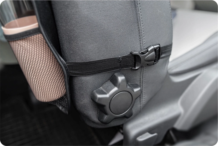 Buzunare elastice din plasă pentru băuturi, buzunare superioare și inferioare pentru jucării, cărți și mărunțișuri – totul are locul lui și este la îndemână.