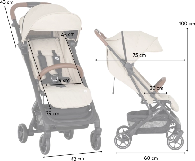 Căruciorul se pliază ușor într-un format compact, stă singur după pliere, iar datorită greutății reduse se transportă comod cu ajutorul mânerului integrat. Alegerea ideală pentru călătorii, plimbări urbane și utilizare zilnică.