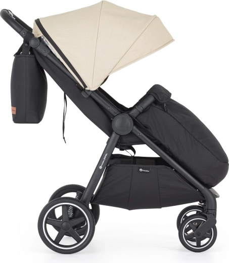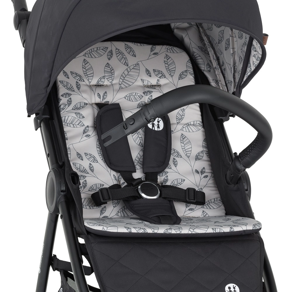 Căruciorul se pliază rapid cu o singură mână spre interior, pentru a menține husele curate. Siguranța anti-deschidere facilitează transportul și depozitarea.