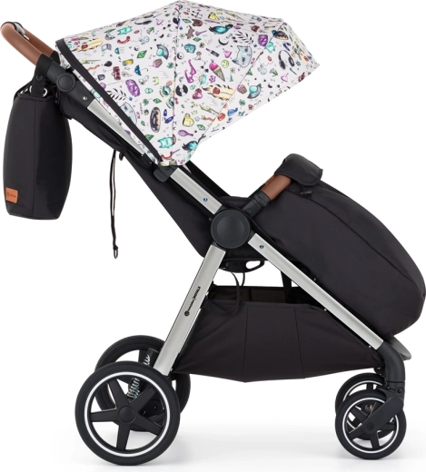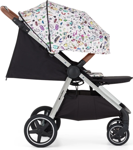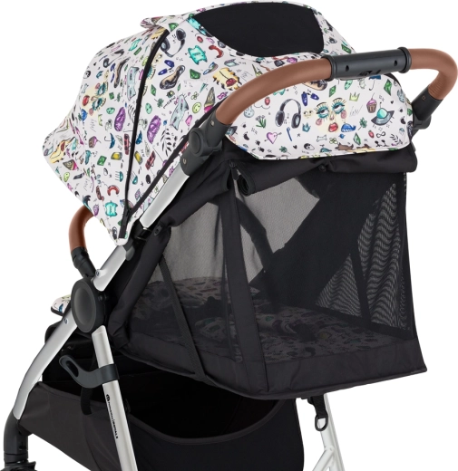 Părinții vor aprecia pliarea simplă cu o singură mână, către interior (husa rămâne curată), bara de protecție rotativă și detașabilă, catarama magnetică și mânerul reglabil pe înălțime. Copilul se bucură de un somn liniștit datorită spătarului lung, reglării aproape până la poziția culcat și copertinei extra lungi cu SPF 50 și fereastră silențioasă cu magnet. Coșul mare, geanta pentru scutece și husa pentru picioare alcătuiesc un echipament practic pentru fiecare zi.