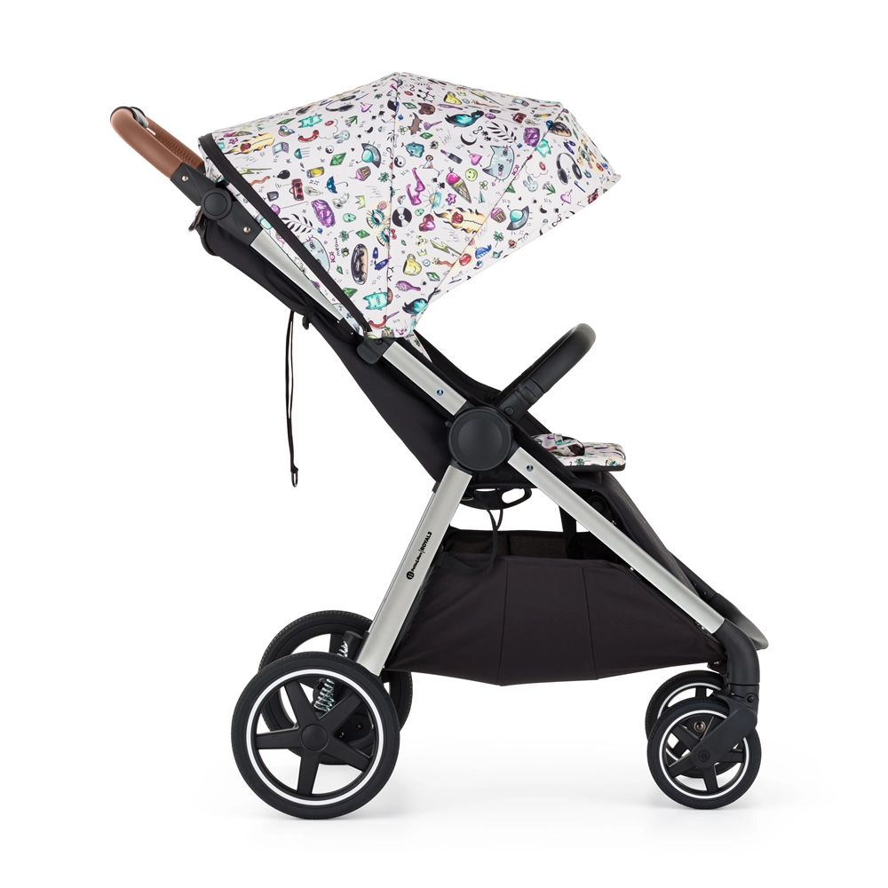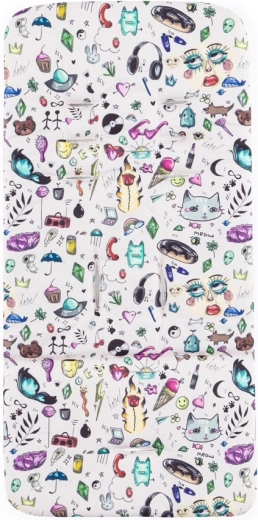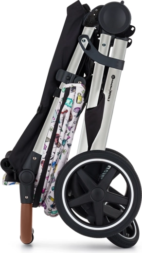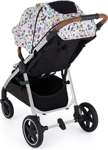 - cadru, roți față și spate integral din cauciuc, husă șezut, geantă pentru scutece, husă neagră pentru picioare, copertină, inserție pentru cărucior cu model Tattoo, pernuțe din 3 piese
