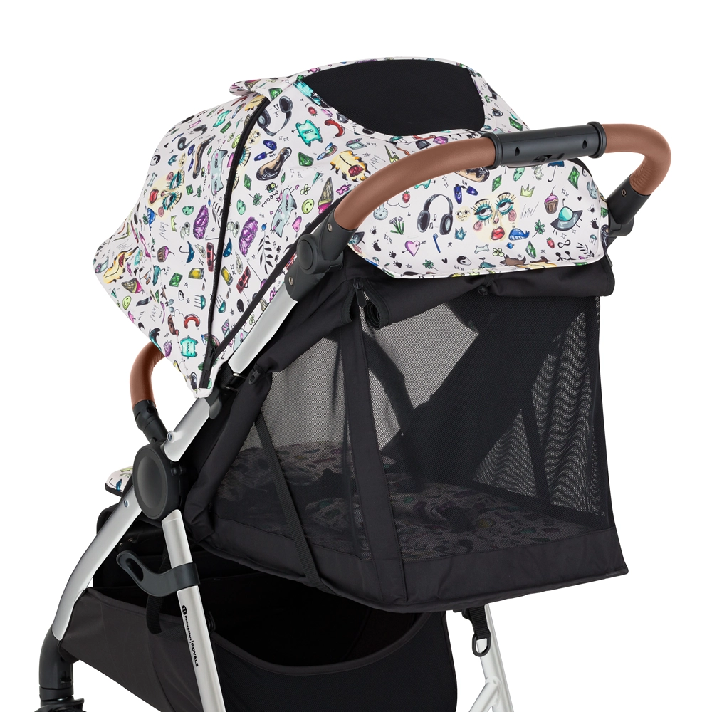 Colecția limitată Limited 100 aduce în orașe și în natură un design proaspăt, creat de tineri designeri. Royal 3 în versiunea Silver Tattoo impresionează prin cadrul din aluminiu solid, cu finisaj elegant, detalii maro din piele eco și roți practice, integral din cauciuc, cu chenar alb stilat. Datorită sistemului Panoramic Ventilation, căruciorul este ventilat pe trei laturi, oferind copilului un climat plăcut chiar și pe timp de caniculă.