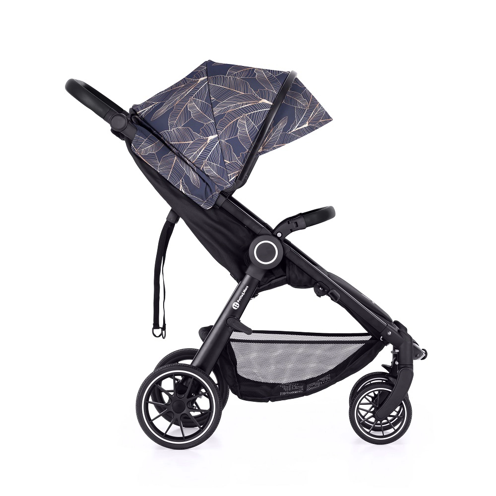 Pentru confortul copilului, are spătar mare, poziționare a spătarului și suportului de picioare aproape la orizontală și centuri în 5 puncte. Pentru părinți există mâner reglabil pe înălțime cu prindere plăcută din piele ecologică, coș spațios de până la 3 kg și buzunar practic pentru mărunțișuri. Setul limitat include o copertină și o inserție cu motiv Palmtree – un aspect unic într-o ediție de doar 200 de bucăți.