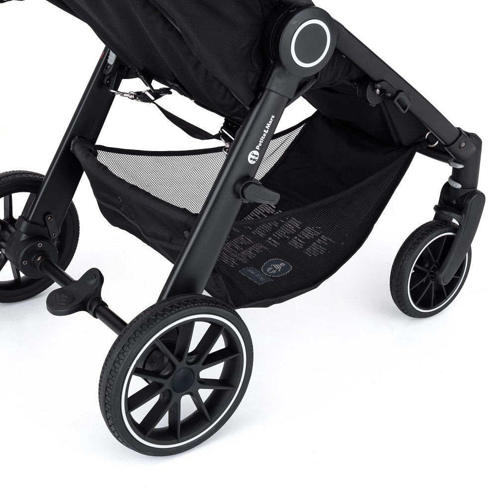Petite&Mars Street+ RWS Black Limited 100 Palmtree este un cărucior elegant și practic, care face față și terenului mai solicitant. Construcția stabilă, ușor suspensionată și roțile mari din cauciuc RWS oferă o plimbare lină și sigură fără risc de înțepare. Datorită plierii simple cu o singură mână și dimensiunilor compacte după pliere, este ideal pentru mașină și spații mai mici.