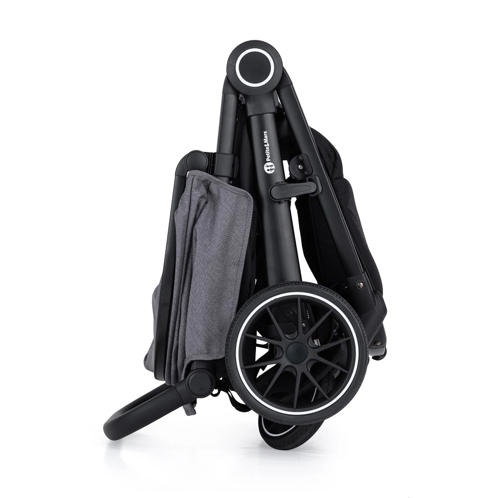 Pliare rapidă și compactă pentru manevrare ușoară acasă și în călătorii. Căruciorul rămâne în picioare când este pliat și economisește spațiu.