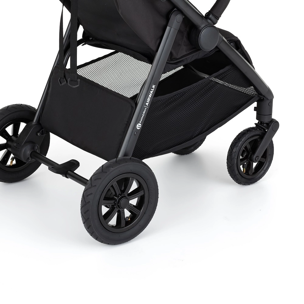 Căruciorul sport PETITE&MARS Airwalk se remarcă prin cadrul stabil cu roți gonflabile, care face față atât mediului urban, cât și terenului mai solicitant. Datorită plierii simple, căruciorul stă singur după pliere și nu ocupă mult spațiu. Spătarul generos, reglarea aproape până la poziția culcat și cele trei poziții ale suportului pentru picioare asigură somn confortabil și plimbări mai lungi.
