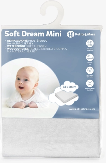 Cearșaful elastic impermeabil PETITE&MARS Soft Dream Mini este alegerea ideală pentru pătuțurile mai mici. Combină jerseu fin din 100% bumbac pentru confortul bebelușului și protecția saltelei împotriva umezelii. Datorită elasticului de pe margini, rămâne pe poziție, nu se adună, iar pătuțul arată mereu îngrijit.