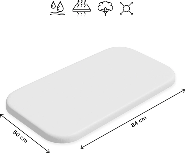 Cearșaf elastic practic și confortabil pentru bebeluși, cu dimensiunile 84 × 50 cm. Datorită stratului impermeabil protejează salteaua de umezeală, iar jerseul de bumbac moale este plăcut la atingere și respirabil. Cu elastic pe margini stă perfect pe saltea și poate fi spălat până la 95 °C pentru igienă maximă.
