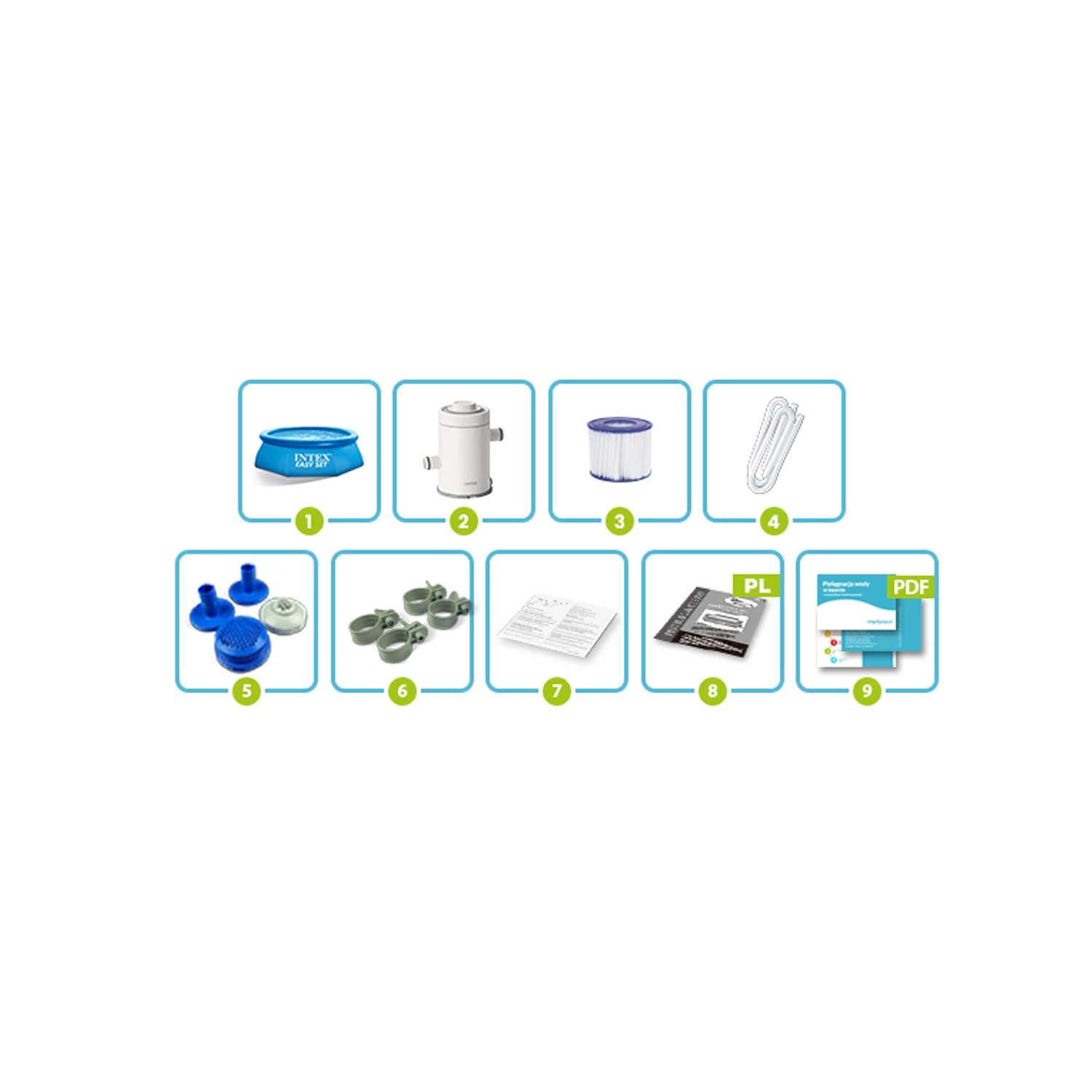 Pachetul include o pompă de filtrare performantă, cu furtunuri corespunzătoare și filtru de tip H, pentru ca apa să rămână cristalină. Materialul rezistent, protejat împotriva perforării, din 3 straturi de PVC cu întăritură din nailon vă asigură răcorire fără griji pe tot parcursul verii.