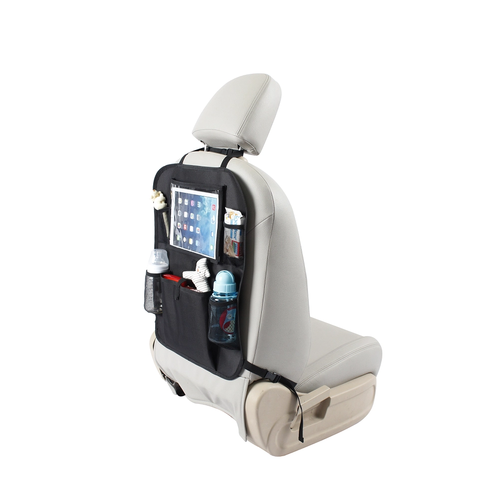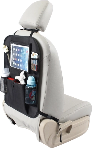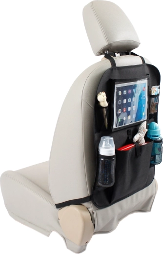 Fără haos pe bancheta din spate. Acest organizator universal PETITE&MARS se prinde ușor și ferm de partea din spate a scaunului din față și le pune copiilor tot ce au nevoie la îndemână. Buzunarul transparent pentru tabletă de până la 11,5″ protejează ecranul tactil și în același timp asigură o imagine clară pentru vizionarea basmelor sau a jocurilor în timpul mersului.