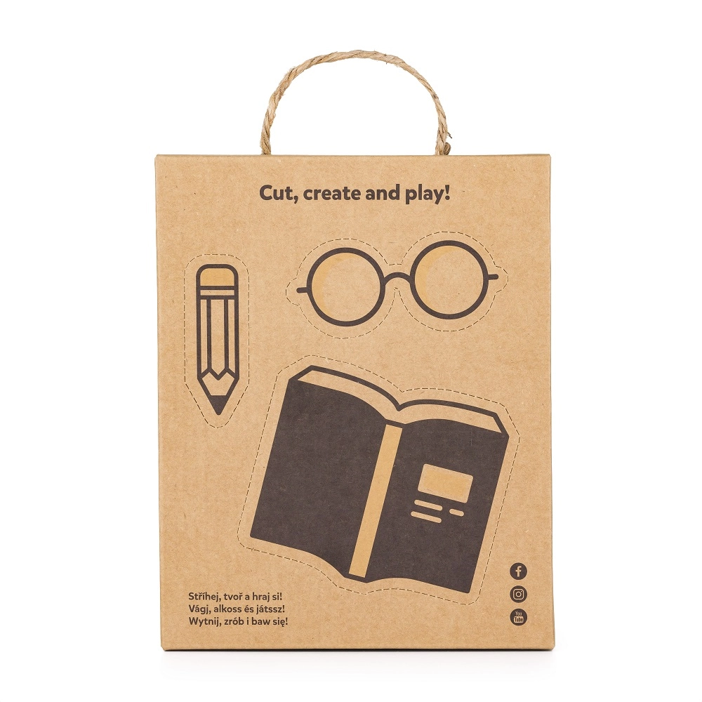 Ambalajul ecologic al păpușii servește și ca set creativ – pe spatele cutiei vei găsi accesorii din hârtie de desprins (carte, creion și alte rechizite școlare) care stimulează imaginația și susțin activitățile de joc de rol. Astfel, păpușa contribuie la dezvoltarea motricității fine, a emoțiilor și a abilităților sociale.