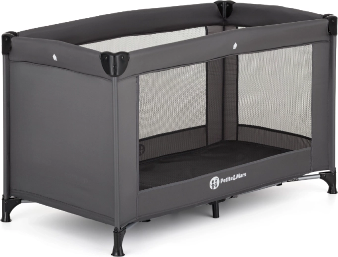Pătuțul de călătorie PETITE&MARS Koot Lite, ușor și compact, în elegantul gri închis, este ideal atât pentru călătorii, cât și pentru acasă. Oferă o construcție metalică stabilă, laterale din plasă respirabilă pentru o mai bună circulație a aerului și un sistem de siguranță Double Lock împotriva plierii accidentale. Se pliază ușor, încape în geanta de transport și este potrivit pentru copii de până la 15 kg.