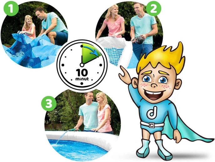 - Sigură și stabilă – construcție autoportantă cu inel superior gonflabil.