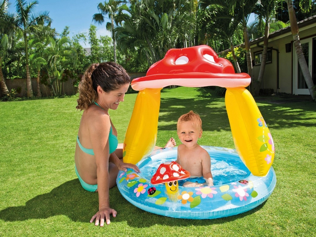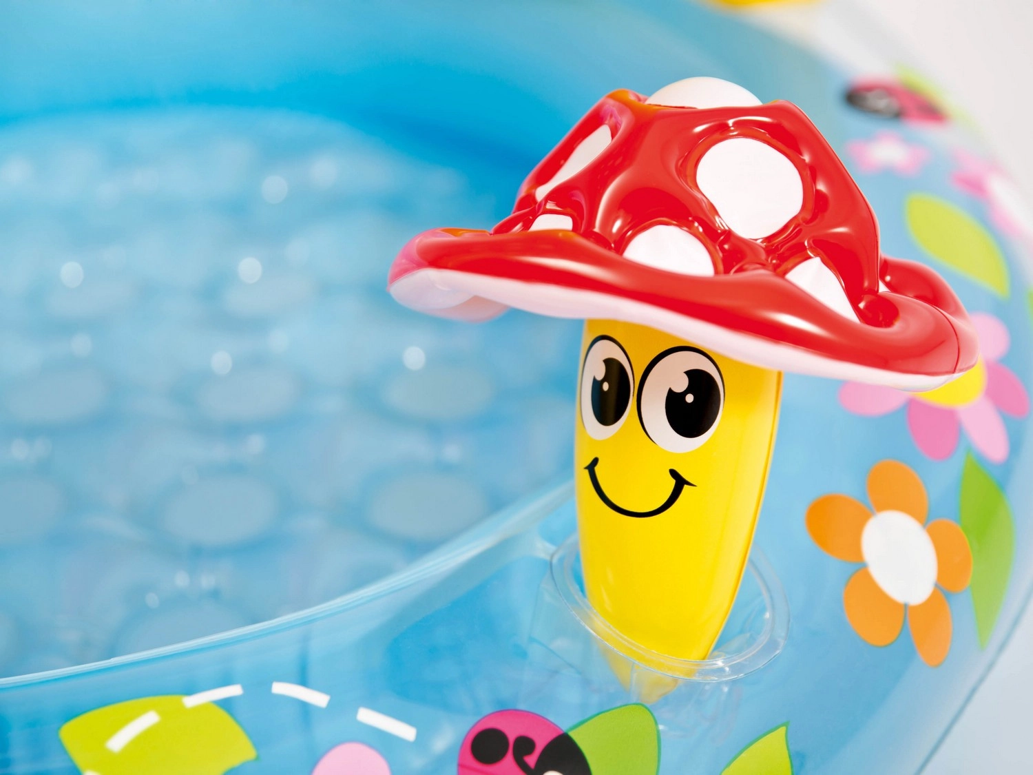 Oferiți-le copiilor un colțișor acvatic sigur, în grădină sau pe terasă. Piscina INTEX, cu grafică veselă de flori și cu adăpostul iconic în formă de ciupercă, oferă umbră în zilele fierbinți și un mediu plăcut pentru primele bucurii în apă. Datorită pardoselii moi, texturate, micuții se simt confortabil și stabili.