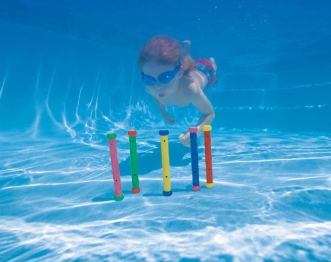 Fiecare bățișor este ponderat, astfel încât, după aruncarea în apă, se scufundă rapid la fund și rămâne în picioare vertical. Copiii pot astfel exersa cu ușurință scufundarea, orientarea sub apă și coordonarea mișcărilor.