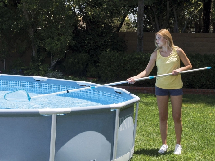 Păstrați piscina impecabilă fără efort. Acest set practic INTEX include o prăjină telescopică de 239 cm, un aspirator de piscină pentru furtun de grădină cu săculeț filtrant și o plasă tip skimmer pentru colectarea impurităților de la suprafață. Ideal pentru piscine supraterane cu diametrul de până la 4,88 m, operare ușoară și rapidă, ca să vă puteți concentra pe apă curată și relaxare fără griji.