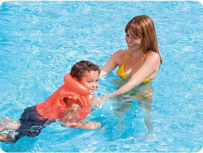 Căutați un ajutor de încredere pentru învățarea înotului? Vesta gonflabilă pentru copii INTEX oferă confort, siguranță și vizibilitate excelentă în apă. Trei camere de aer independente și gulerul moale ajută la menținerea copilului la suprafață, în timp ce cele două catarame cu închidere rapidă asigură o fixare ușoară și sigură.