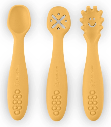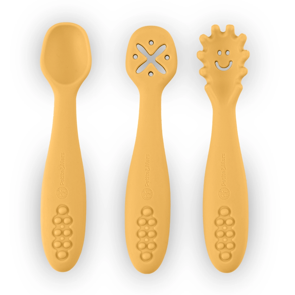 Setul PETITE&MARS TAKE&MATCH în nuanța Intense Ochre este conceput pentru a ajuta copiii de la 6 luni să stăpânească primele piureuri și hrănirea independentă mai avansată. Cele trei lingurițe diferite susțin motricitatea, percepția formelor și texturilor și oferă siguranță datorită preluării controlate. Vârfurile moi sunt blânde cu gurițele sensibile ale copiilor, iar mânerele scurte, anti-alunecare, se potrivesc perfect în mâna mică a copilului.