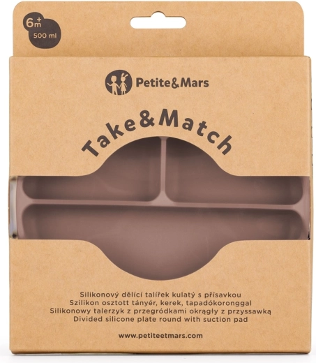 Farfuria divizată din silicon PETITE&MARS din colecția TAKE&MATCH îi ajută pe copii să învețe să mănânce singuri. Trei compartimente spațioase mențin preparatele separate, formele rotunjite facilitează preluarea, iar ventuza puternică fixează ferm pe o suprafață netedă. Siliconul alimentar durabil, fără BPA, este sigur pentru preparate calde și reci.