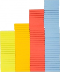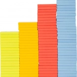 Culorile contrastante susțin memoria vizuală și îi ajută pe copii să sorteze corect și să potrivească exemplele cu rezultatele.