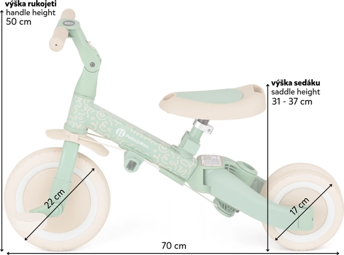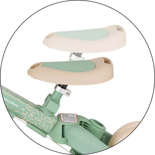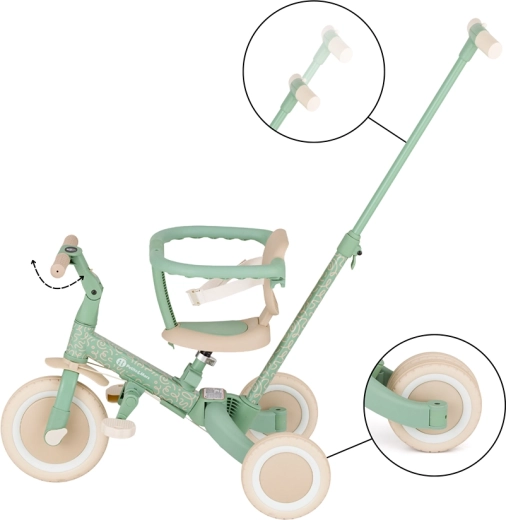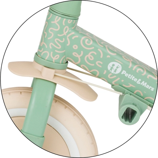 Descoperiți soluția universală pentru primele plimbări – tricicleta 5în1 Petite&Mars Turbo Green Twist îmbină designul modern cu o construcție funcțională. Datorită mai multor moduri, se adaptează cu ușurință abilităților actuale ale copilului și îi permite să progreseze pas cu pas de la o tricicletă stabilă la mersul independent pe o bicicletă cu pedale.