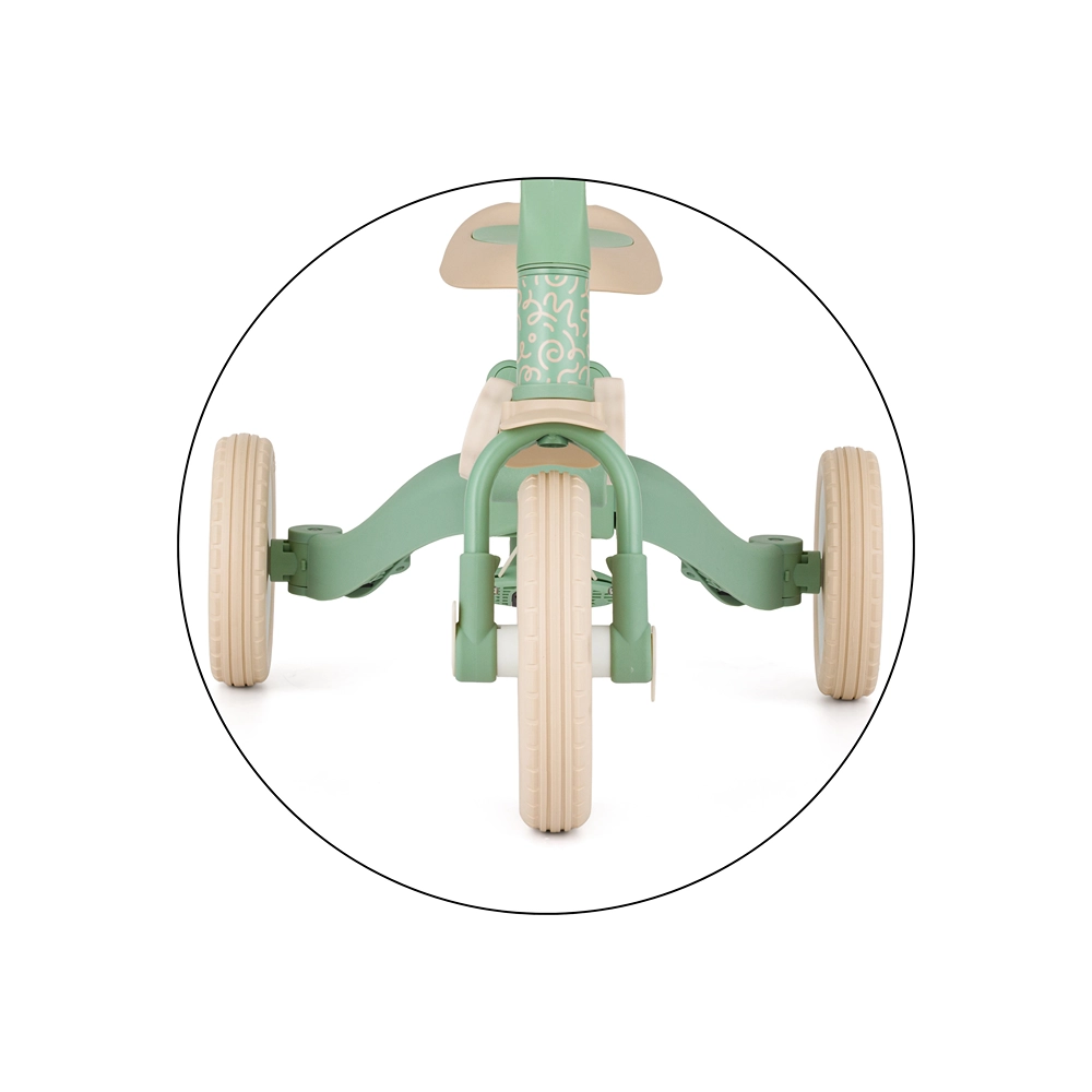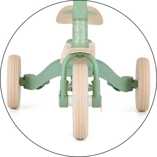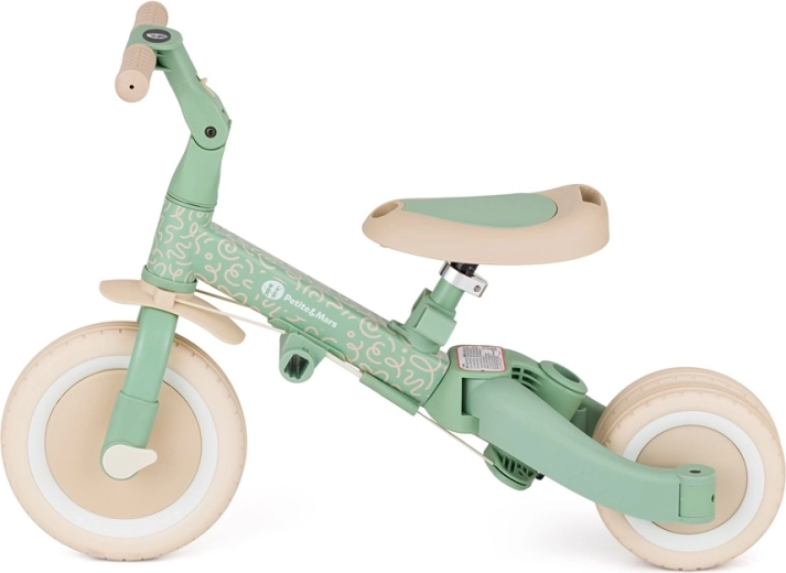 Tricicleta multifuncțională 5în1 Petite&Mars Turbo, ediție limitată Green Twist, crește odată cu copilul tău de la 1,5 la 5 ani. Oferă o tranziție lină de la modul cu asistența părintelui, prin bicicletă de echilibru, până la bicicletă de balans și bicicletă cu pedale. Datorită transformării rapide fără unelte, ghidonului și șeii reglabile, pedalelor detașabile și roților din cauciuc rezistente, asigură o plimbare sigură și confortabilă pe diferite suprafețe.