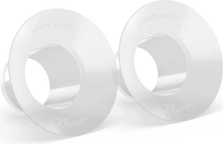 Datorită construcției bine gândite, din puține piese, curățarea și asamblarea sunt rapide și intuitive. Diferitele dimensiuni ale componentelor (cupe 28 mm și inserții 26 mm) oferă o potrivire mai precisă pentru mameloane și sâni mai mari, sporind confortul și eficiența pomparii. Utilizați exclusiv cu recipientele colectoare Philips AVENT în modul hands-free.