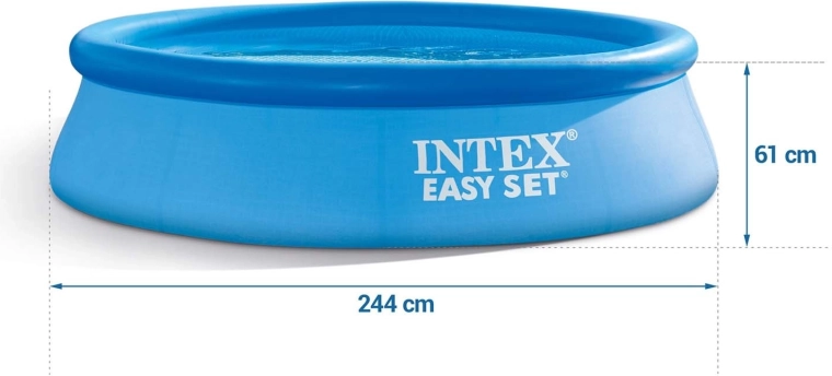 Execuția de calitate, cu PVC în trei straturi și plasă din nailon între straturi, rezistă la rupere și uzură obișnuită. Setul include husă pentru a limita murdăria din apă, petic pentru reparații rapide și manual de utilizare. Diametrul practic de 244 cm și înălțimea de 61 cm oferă spațiu confortabil pentru răcorirea întregii familii.