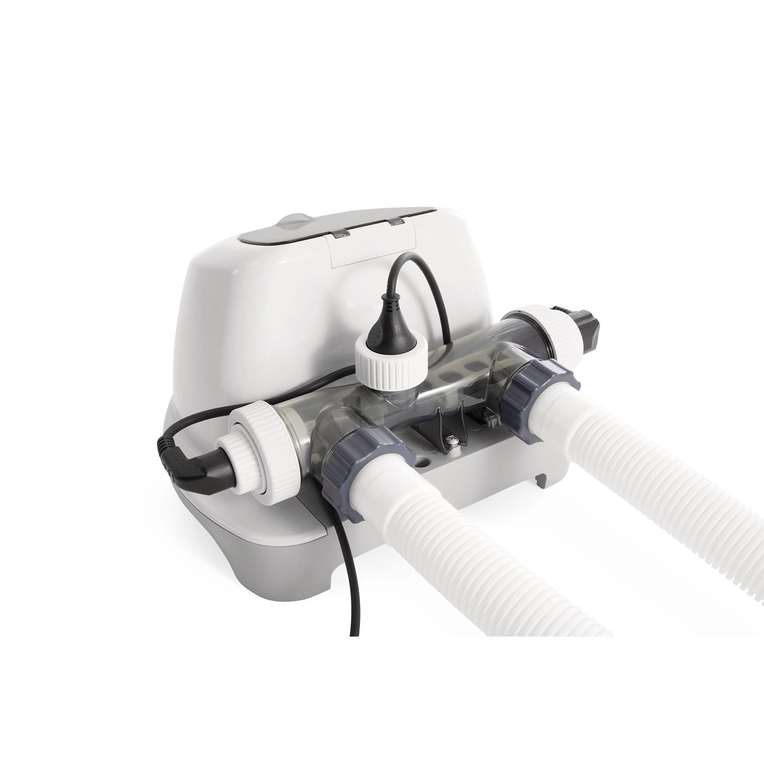 Solinatorul INTEX transformă sarea dizolvată în apă în clor natural, menținând apa curată și igienică pe termen lung. Este ideal pentru familii și persoane cu piele sensibilă sau alergică, deoarece reduce necesitatea produselor chimice tradiționale.