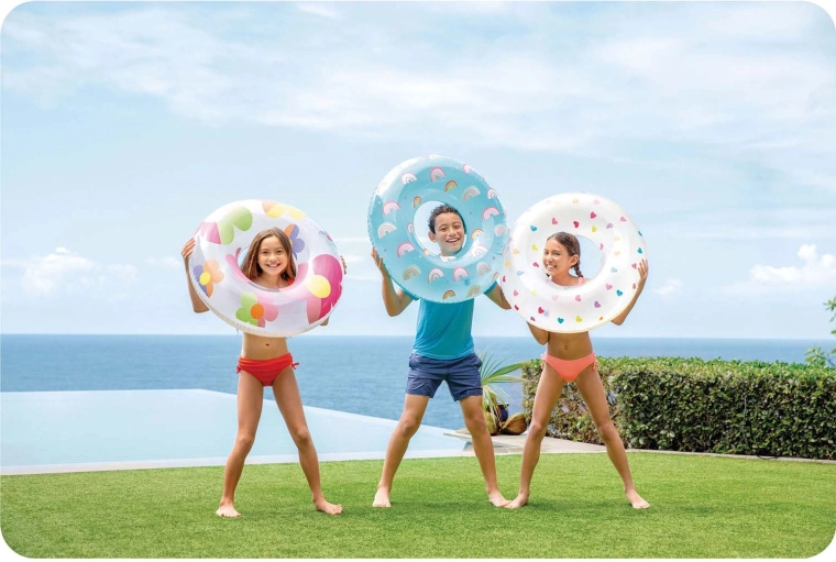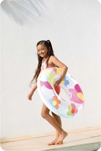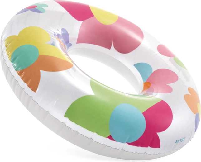 Colacul de înot INTEX cu flori colorate aduce multă distracție și relaxare pe apă. Execuția transparentă și albă, cu culori intense, este foarte vizibilă și arată grozav în orice fotografie de vară. Datorită PVC-ului de calitate, cu grosimea de 0,2 mm, colacul este ușor, dar în același timp rezistent la mici zgârieturi.