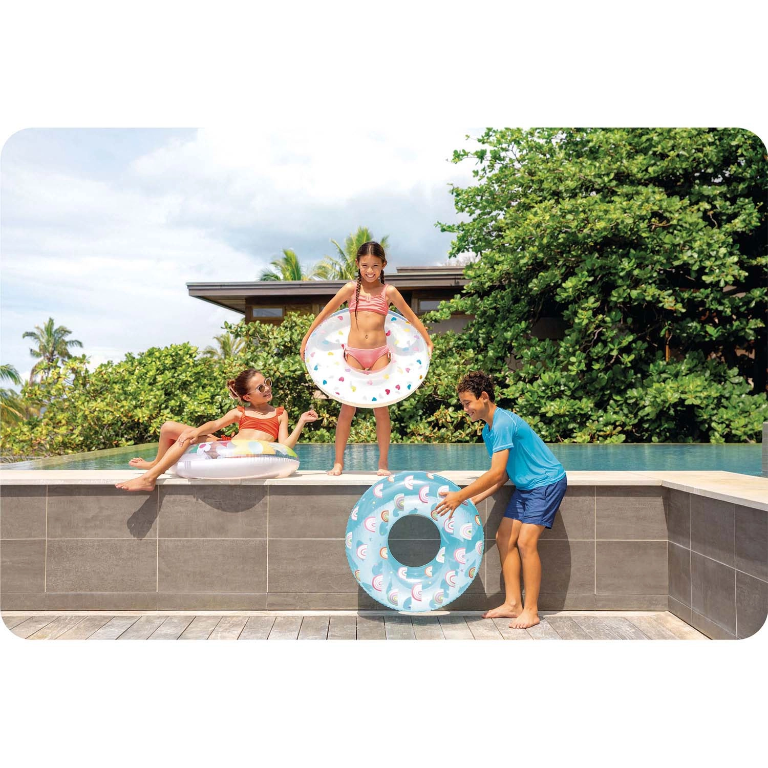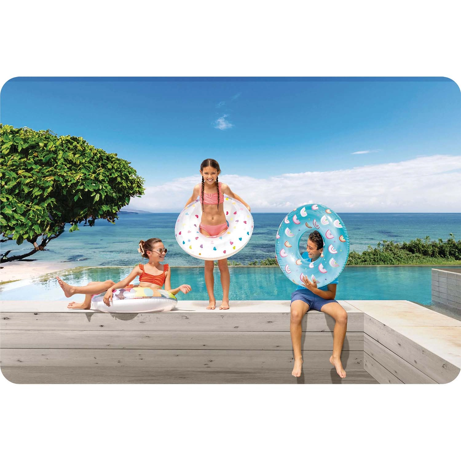 Corpul transparent, cu flori accentuate și multicolore, crește vizibilitatea pe apă și adaugă un aspect proaspăt activităților de vară, îndrăgit de copii.