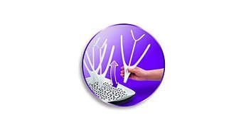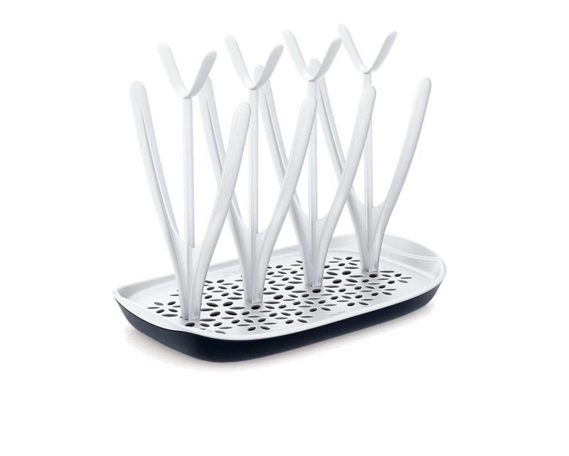 Suportul de uscare Philips Avent este conceput pentru a asigura uscarea rapidă și organizată a tuturor accesoriilor zilnice pentru hrănirea bebelușului. Datorită dispunerii inteligente a stâlpișorilor, găzduiește până la 8 biberoane, tetine, inele, piese ale pompei de sân și alte accesorii. Tava detașabilă colectează apa scursă și menține spațiul de lucru uscat și curat.